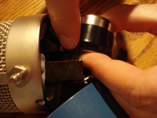 Run some tape from the mic to the cylinder to keep it firmly in place so it doesn't rattle with loud noises.