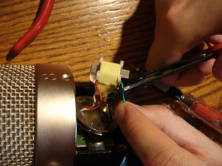"Keep the wires from primary to the ribbon itself as short as possible. Even shortening it a couple of inches can make a big difference. Keep in mind that the ribbon motor itself typically has a d.c.r. of less than one (1) Ohm. Saving even 1/10 Ohm becomes an important factor in the performance of the microphone."