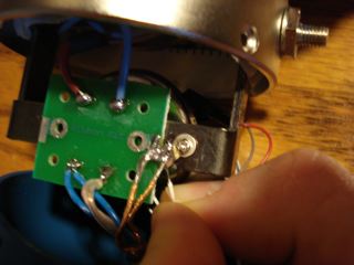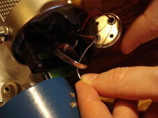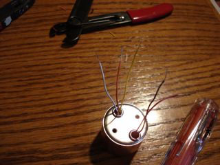 Thread the white wire through the top of the cylinder and around the pcb board.