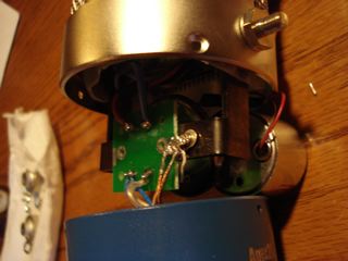 Pulling off the cylinder from the pcb board reveals two screws holding the top of the cylinder which contains the transformer.